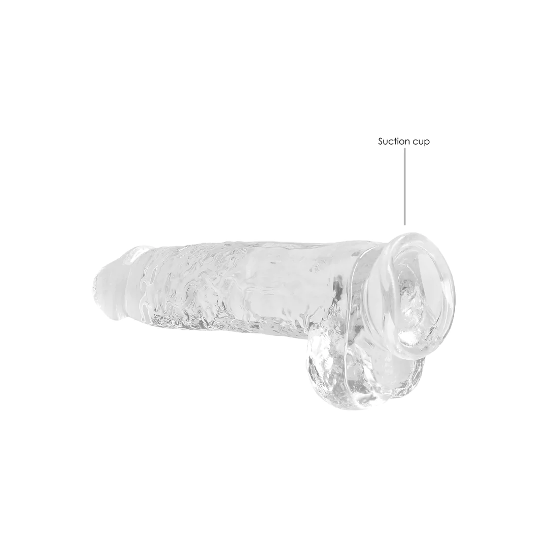 Este modelo REALROCK CRYSTAL CLEAR ha sido diseñado con testículos realistas para una experiencia aún más realista. Todos incluyen una ventosa resistente para que puedas adherirlo a prácticamente cualquier superficie lisa. Todos los REALROCK CRYSTAL CLEAR están libres de ftalatos y látex, son seguros para el cuerpo y no porosos, lo que facilita su limpieza y les confiere una mayor durabilidad.