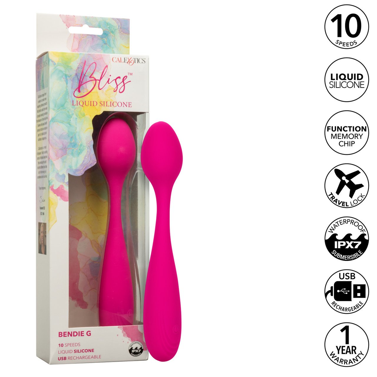 Prepárate para hasta 55 minutos de placer a toda velocidad o disfruta de 80 minutos en la velocidad más baja. El Bendie G de silicona líquida Bliss es el compañero perfecto para tus momentos íntimos, ofreciendo flexibilidad, potencia y sensaciones inolvidables.