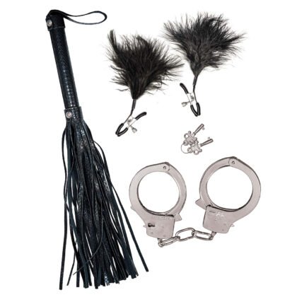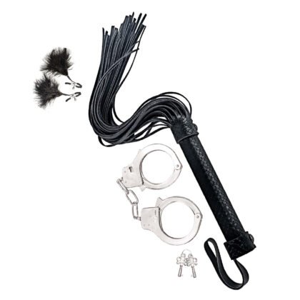 Sé el primero en valorar “BONDAGE BY NASSTOYS WHIP, FEATHER & CUFFS-BLACK”