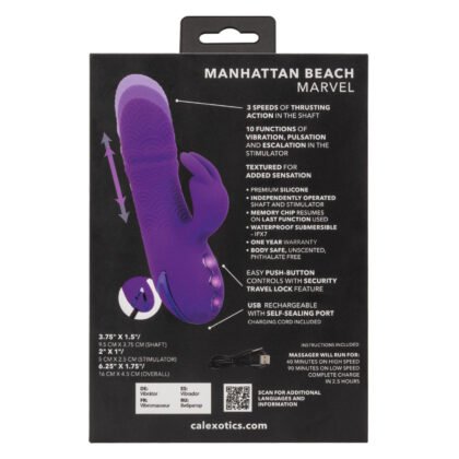 Presentamos el California Dreaming Manhattan Beach Marvel, un potente, compacto y dinámico estimulador dual diseñado para elevar tu experiencia de placer. Este estimulador vibratorio y de empuje cuenta con 3 velocidades de empuje independientes en el eje, y su textura sensual añade estimulación extra con cada movimiento.