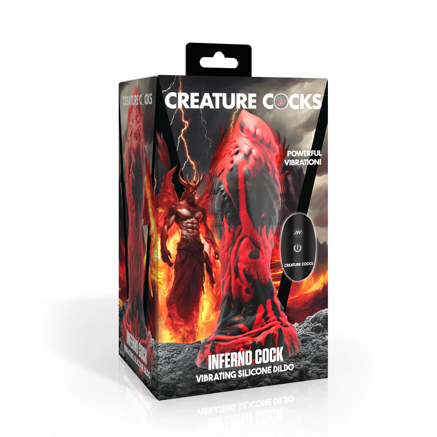 ¡Sumérgete en las llamas de la pasión con el dildo vibrador de silicona Inferno Cock! Con su fascinante combinación de colores rojo y negro, este dildo ofrece texturas intrincadas como estrías y púas para sensaciones inigualables.