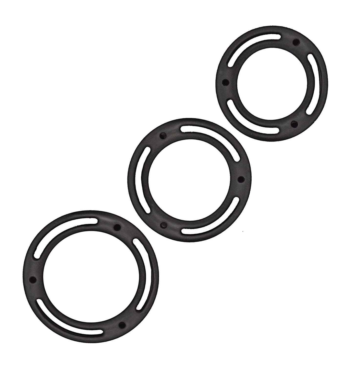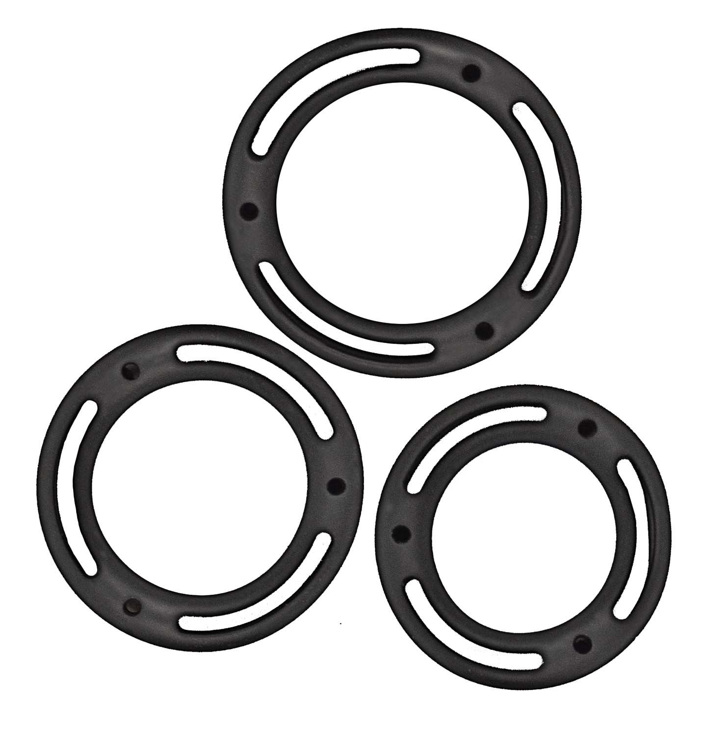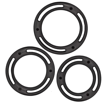 El set incluye tres anillos para el pene de diferentes tamaños, cada uno meticulosamente elaborado con silicona 100 % en un elegante color negro. Su diseño experto y su elasticidad proporcionan un ajuste cómodo y seguro, adaptándose a diferentes usuarios y preferencias. Ya sea que los uses en el pene, los testículos o ambos, los Mack Fit Cockswellers se ajustan para mantenerse en su lugar, eliminando cualquier preocupación por voltearlo o moverlo durante tus juegos íntimos.