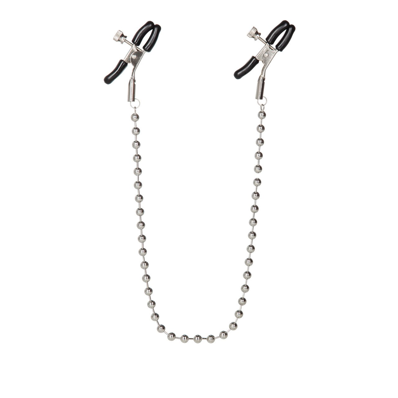 Experimenta el exquisito placer de las pinzas para pezones Nipple Play con cuentas plateadas, una divertida adición a tu colección íntima, lista para complacer tus deseos. Este set incluye dos pinzas multiusos totalmente ajustables, diseñadas para máxima comodidad y placer.