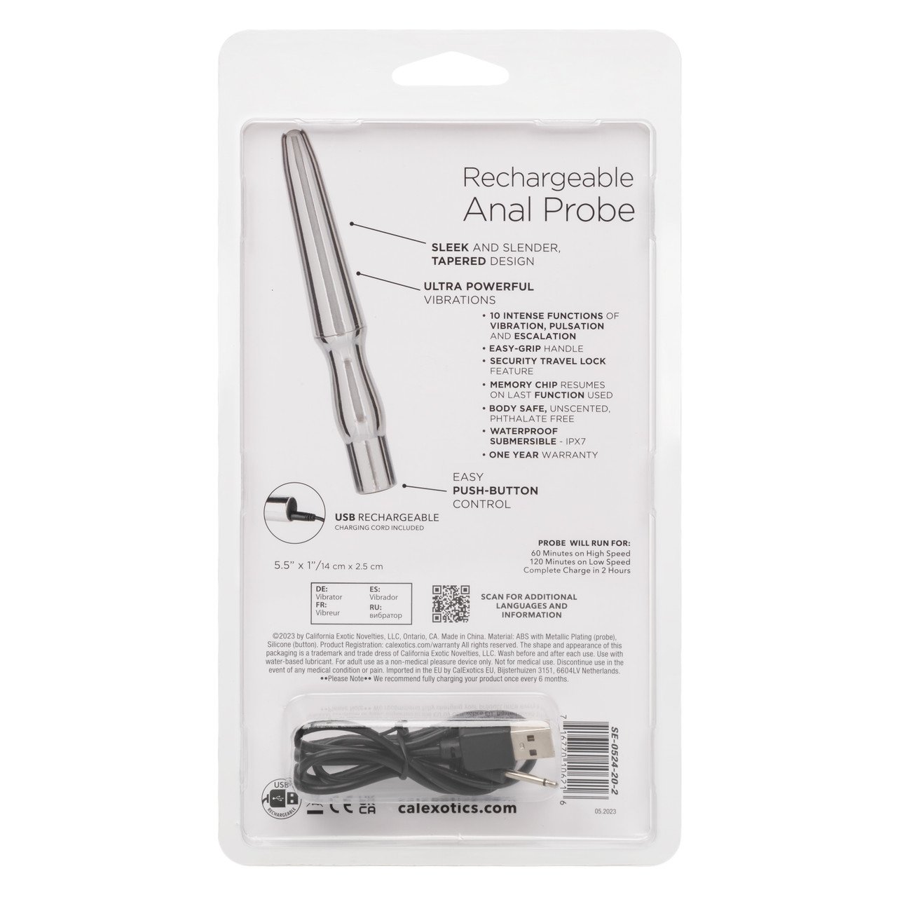 Con su capacidad de recarga USB, puedes cargar fácilmente tu sonda con el cable de carga incluido. Una carga completa toma solo 2 horas y tendrás hasta 60 minutos de emocionantes vibraciones de alta velocidad o 120 minutos de estimulación a baja velocidad para disfrutar.