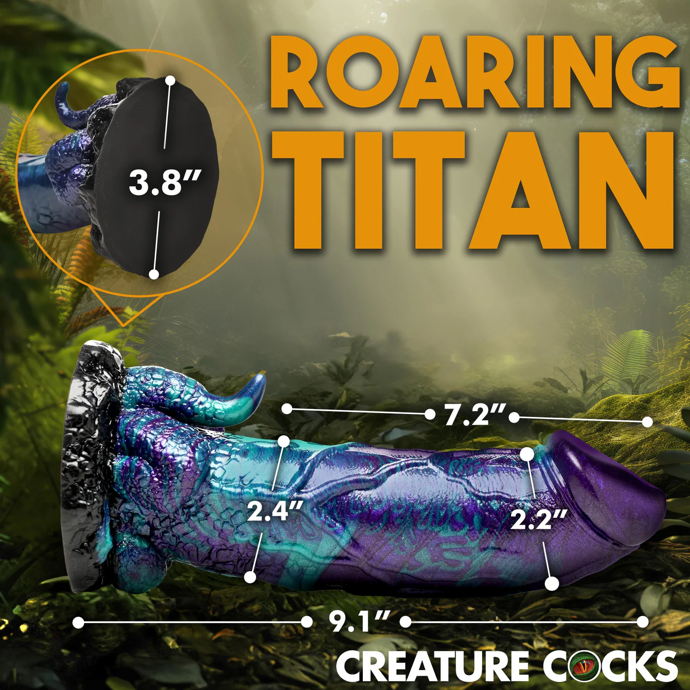 El cuerpo curvo tiene venas prominentes en un lado y una cresta lisa en el otro. En la base hay pequeñas patas de dinosaurio, una cola curva y un par de testículos. ¡Es tan divertido de ver como de montar! La base ancha proporciona una potente succión para que puedas usar las manos libres colocándolo sobre cualquier superficie plana para mantenerlo en su lugar. ¡También puedes combinarlo con un arnés compatible para juegos de pegging!